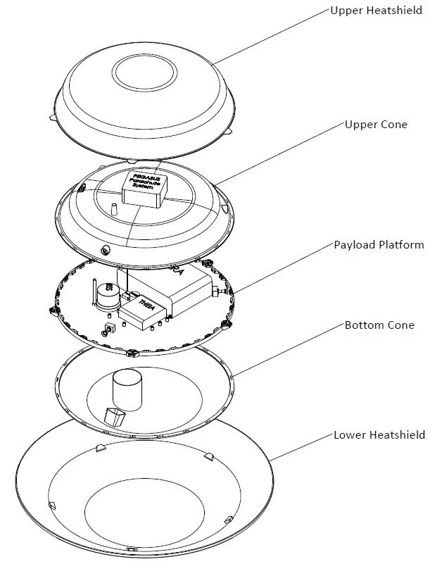 Predicted to survive atmospheric entry at 6 km/s, reduce to subsonic with PICA-X and Prosial-coated heat shielding, and deploy precision-guided parachutes to land within <50 m of target coordinates
