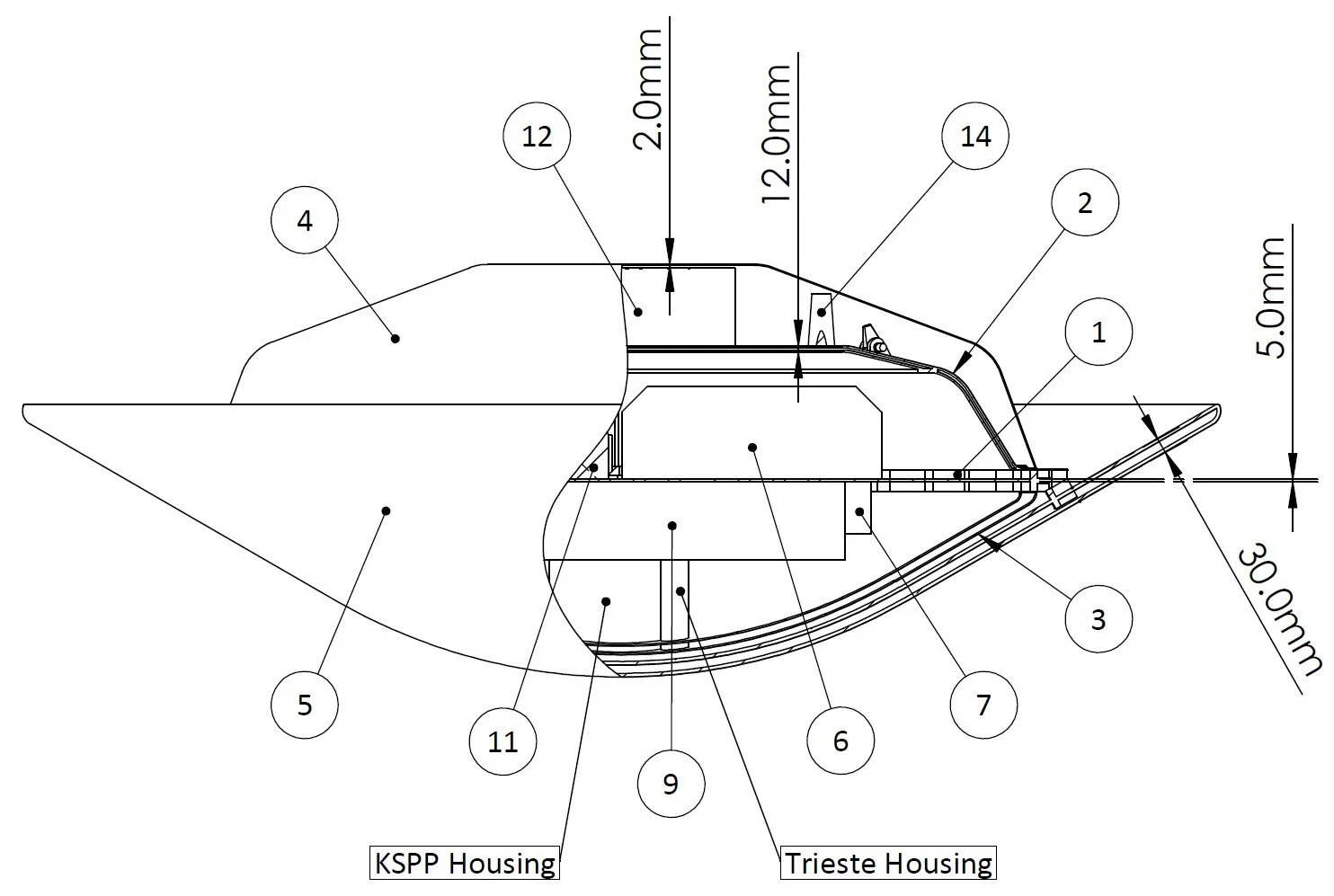 Designed housing for Trieste, a deployable bathythermograph probe to measure vertical profiles of temperature and pressure in Kraken Mare.