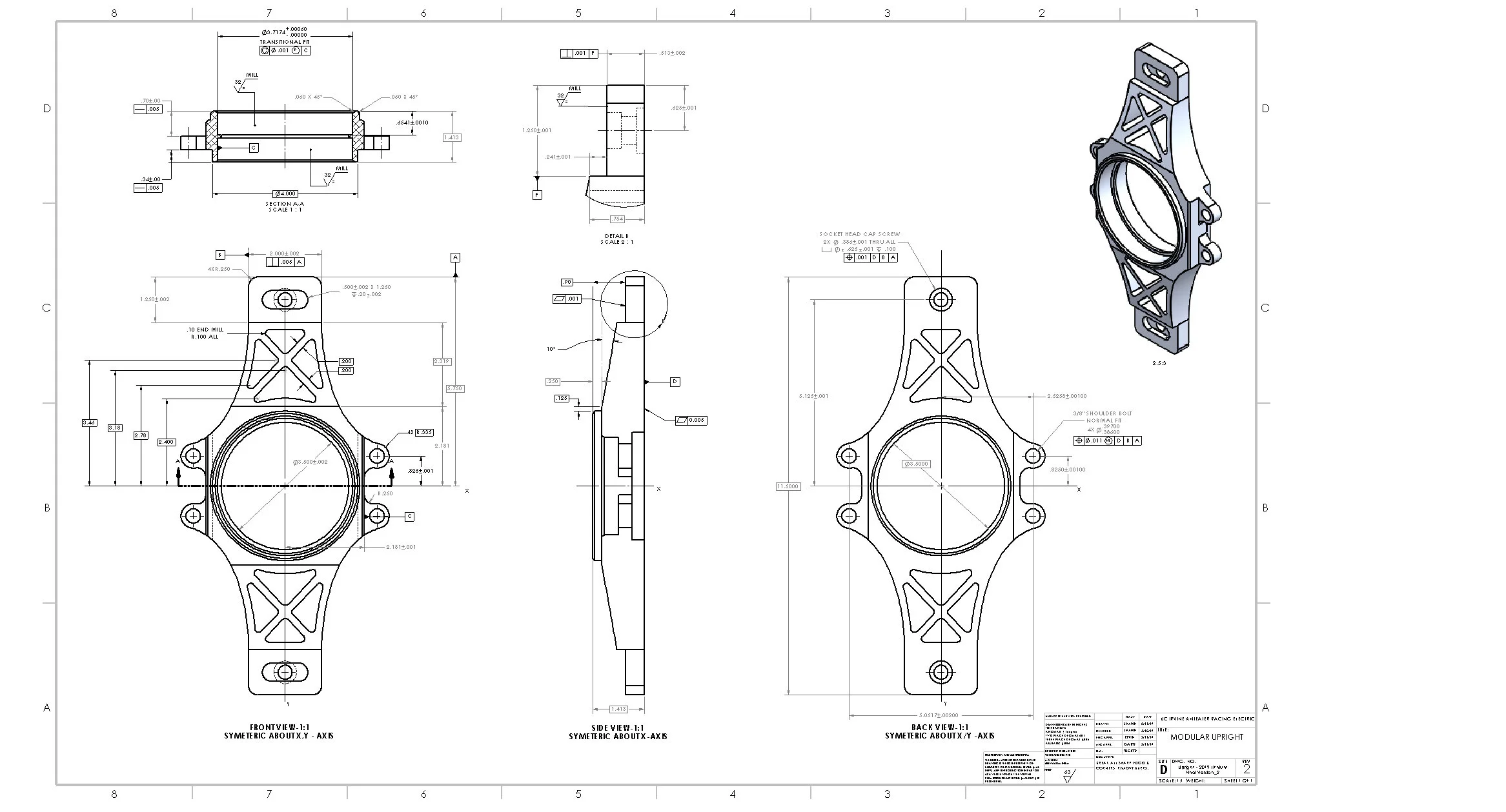Machined aluminum suspension components and 4130 chromoly steel spaceframe structures