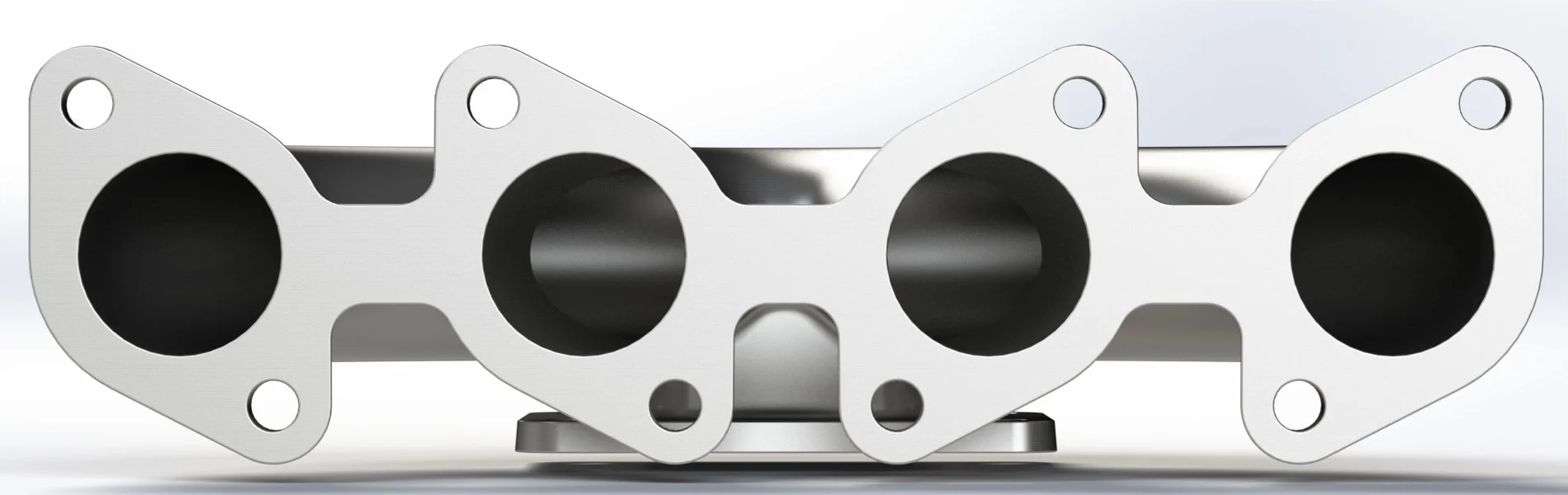 Runners designed for near-equal lengths (~280–320 mm) with gradual merge angles (<15°) to minimize turbulence and maintain exhaust velocity.